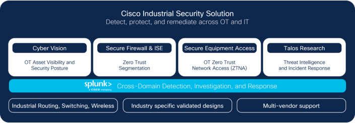 Within the award announcement, IoT Breakthrough emphasizes Cisco improvements in industrial cybersecurity and AI readiness, which it phrases paramount issues for industrial operations. The announcement says, “Designed particularly for industrial wants, Cisco’s switches, routers, and wi-fi tools share a typical basis with their enterprise counterparts… A shared working system, administration platform, and safety measures facilitate collaboration between IT and OT groups.” As proven within the determine, Cisco industrial networking options include built-in visibility, segmentation, zero-trust distant entry, and the menace intelligence wanted for efficient incident response. A case research: Brazil’s CPFL Energia makes use of Cisco options to mechanically detect and profile OT belongings in substations and establish vulnerabilities and anomalies.