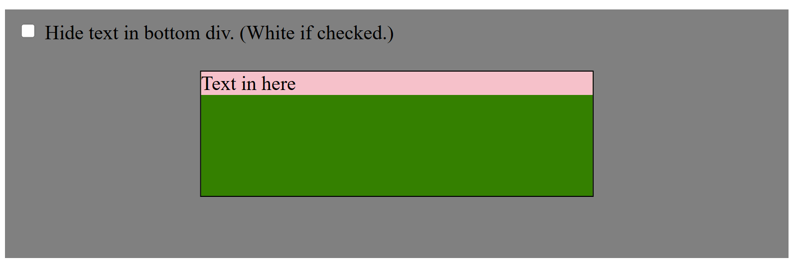 <enter kind="checkbox" id="checkbox"> Cover textual content in backside div. (White if checked.)