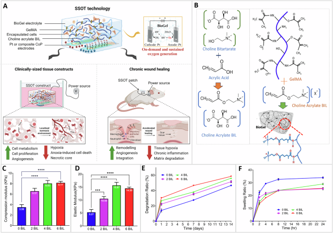 The SSOT sidesteps this by producing oxygen contained in the scaffold itself. The gel combines GelMA and a bio-ionic liquid constituted of choline, a nutrient the physique naturally produces. Collectively they kind a conductive, adhesive hydrogel the staff calls BioGel, which acts as each the electrolyte that carries the present and the atmosphere during which cells dwell and develop.