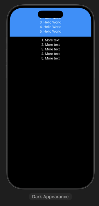 As you possibly can see within the picture, the background extends past the Secure Space as supposed. Nonetheless, the content material (1st VStack) is positioned behind the notch. However the content material needs to be aligned usually and stay totally seen.